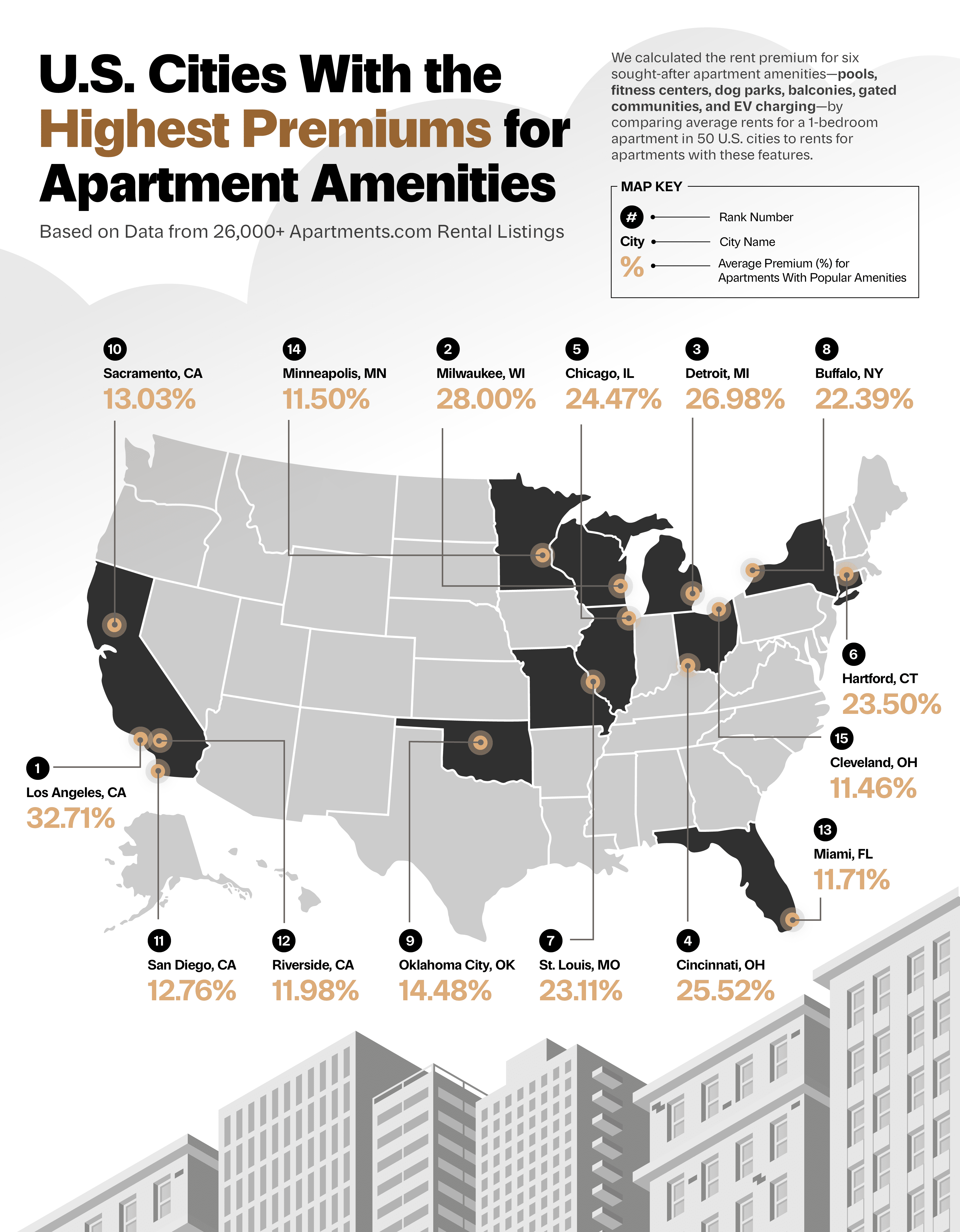 U.S. Cities With the Highest Premiums for Apartment Amenities